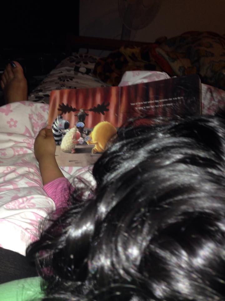 Ms.An sitting between my legs and reading books..She was so frustrated and I was so helpless at the end..finally,we fell asleep a little after 4:30 am. Exhausted now. Turns out its a viral rash-possibly from the sandpit(??) and also has a double ear-infection..:(