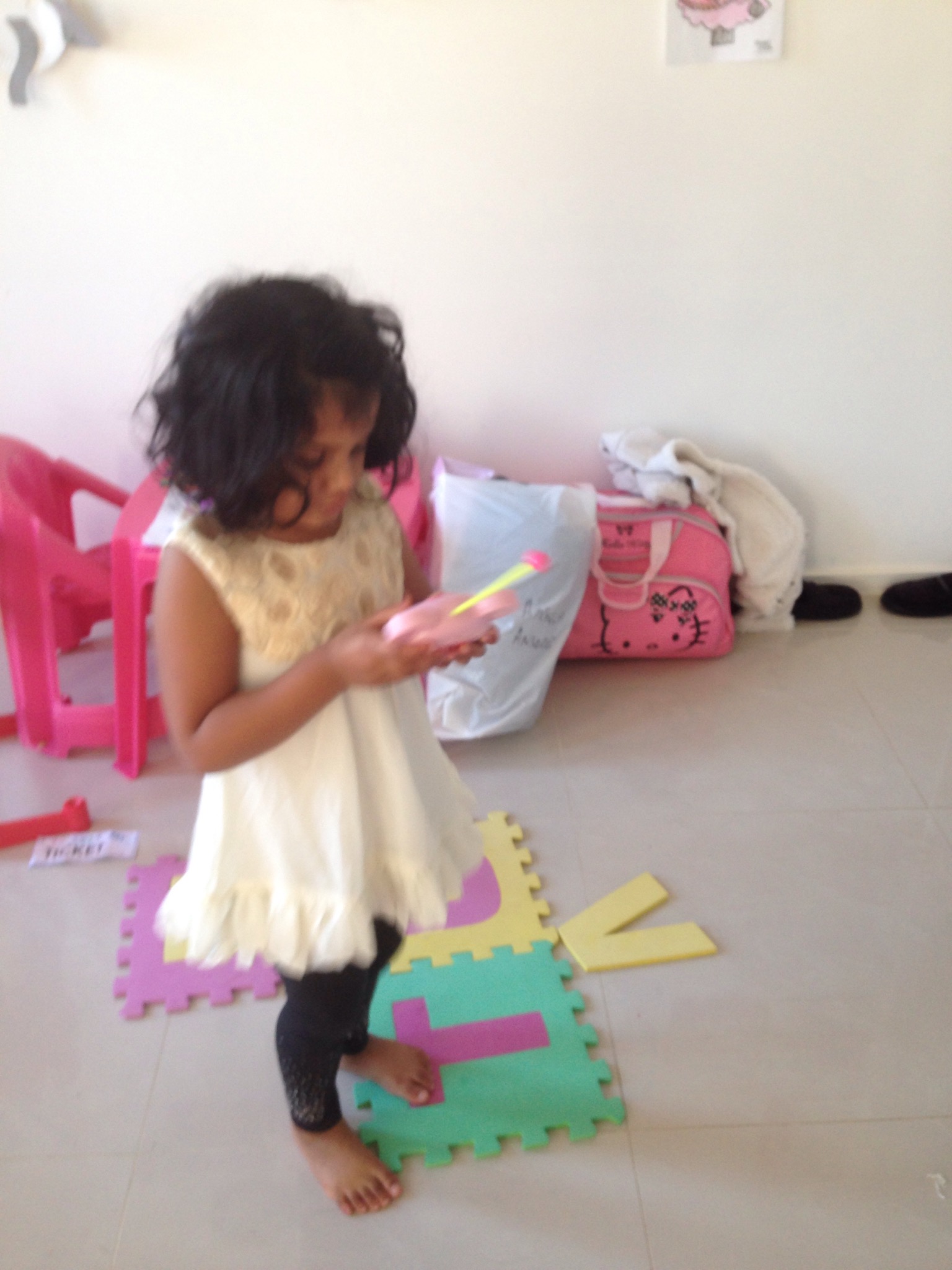 In the mean-time, she was moved to the pre-kinder room at her childcare and was doing the right things there for her teachers. I think being part of a group, helped her.