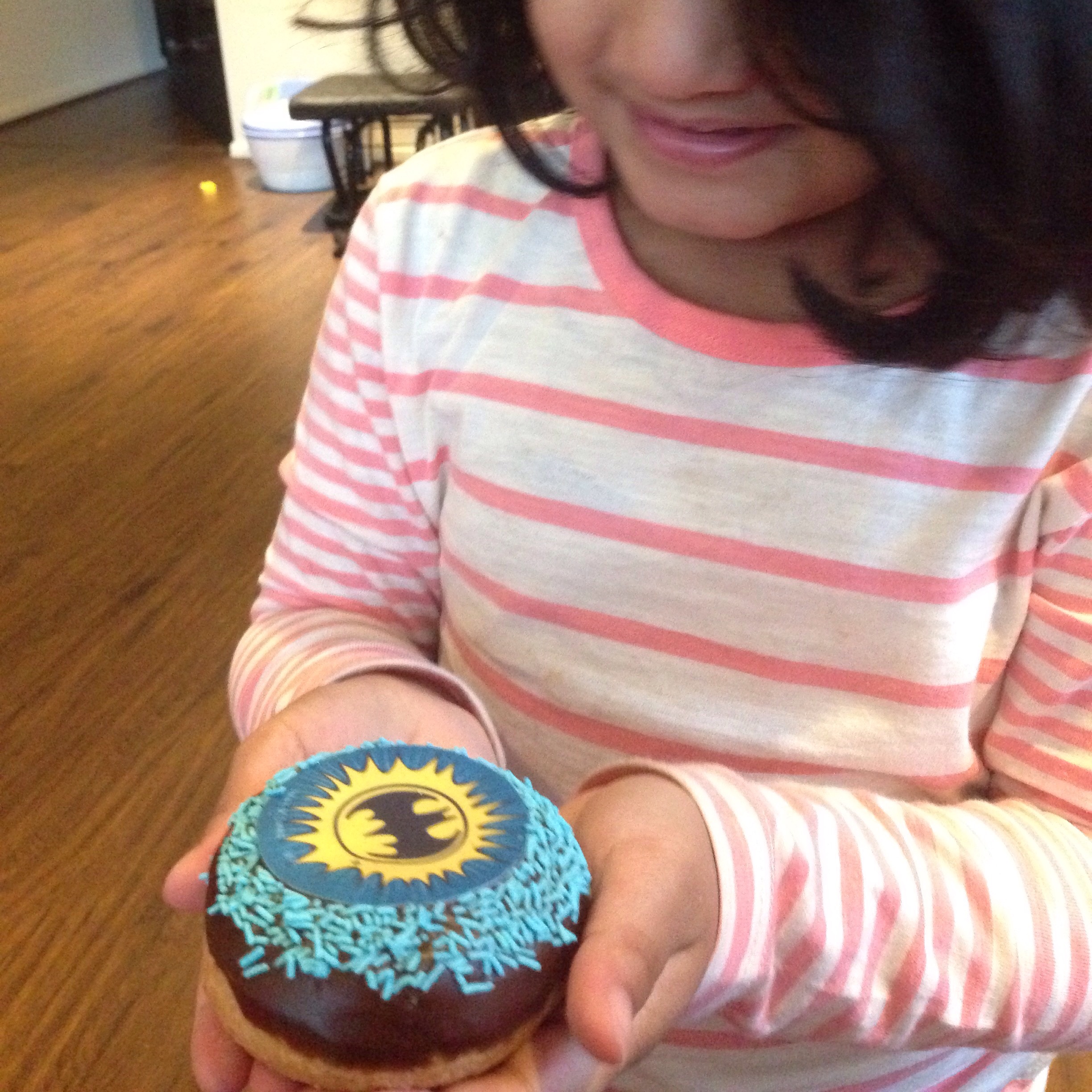 For the other, it was getting this Batman donut in her hot little hands. Yes, she is still obsessed with super heroes π