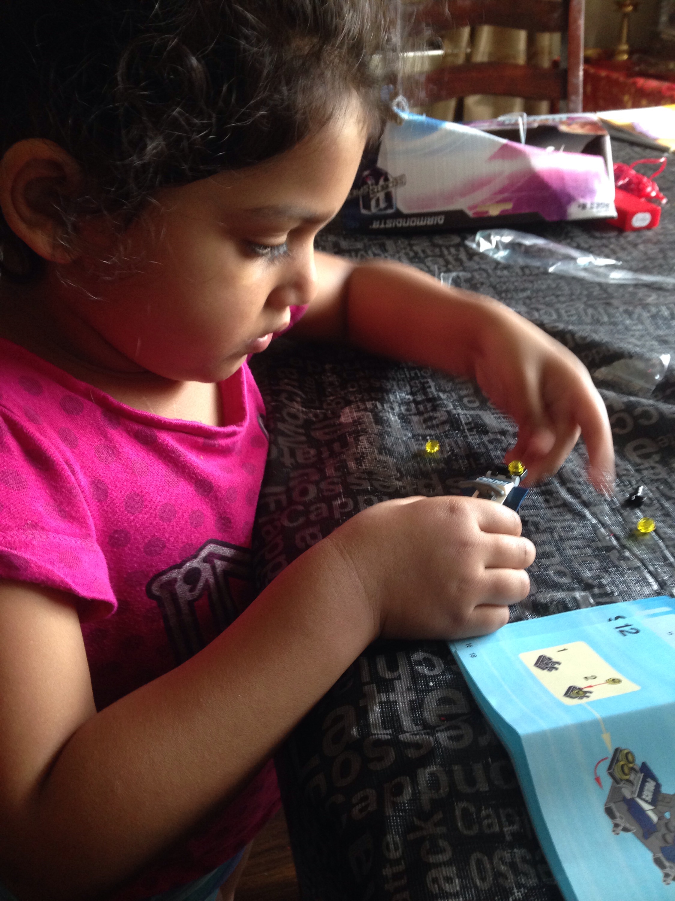 I can’t tell you how proud I am of her! She looked at the instructions, followed the steps, explaining what she was doing all along! I told her ‘ I’m so proud of you’, so many times.. She didn’t care, as she was focused on her Lego, but later in the evening, we met some friends and she told them that her mummy was so proud of her today!! Sigh! My little baby is a big girl now.. A big chatterbox too !