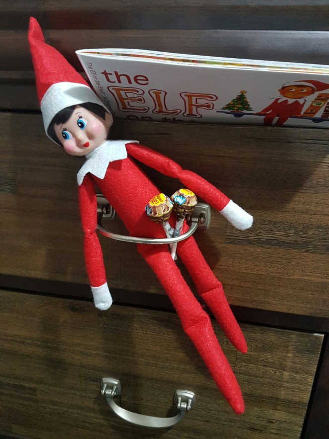 This year we have a visitor – Elfie – Santa’s Elf  and she is entertaining us with her antics. MsA and MsAn are so in awe of her and take her very seriously.